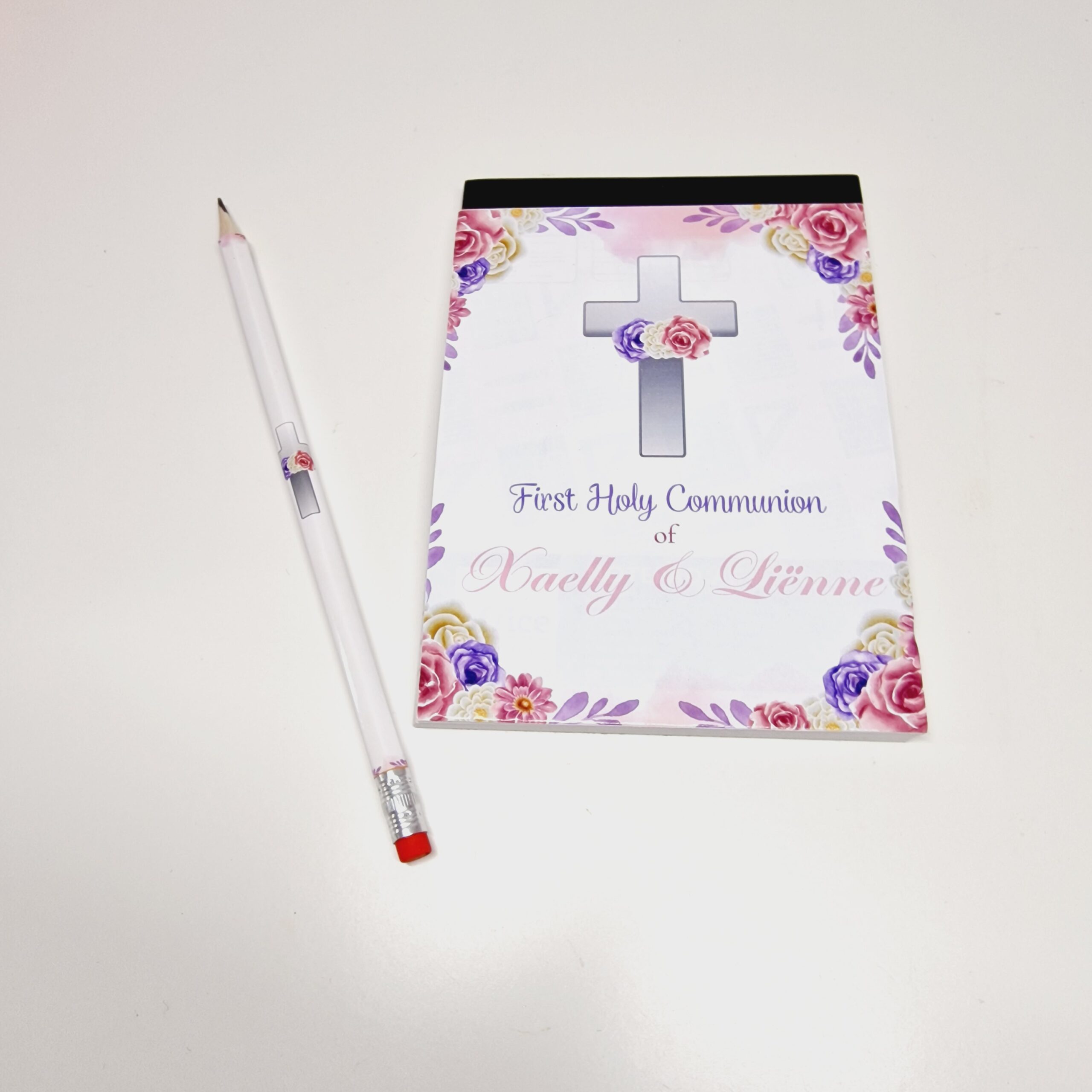 Op zoek naar een originele en praktische traktatie? Dit gepersonaliseerde notitieblok inclusief pen of potlood is perfect voor de wat oudere kinderen en volwassenen. Een leuk en handig aandenken dat altijd van pas komt.